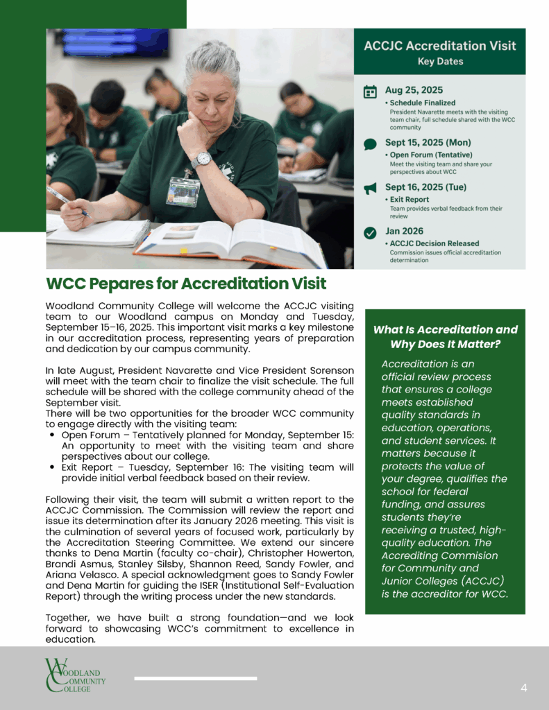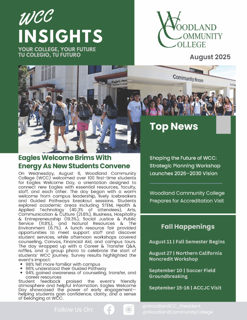 Attached is the August 2025 issue of WCC Insights, highlighting exciting developments at Woodland Community College: