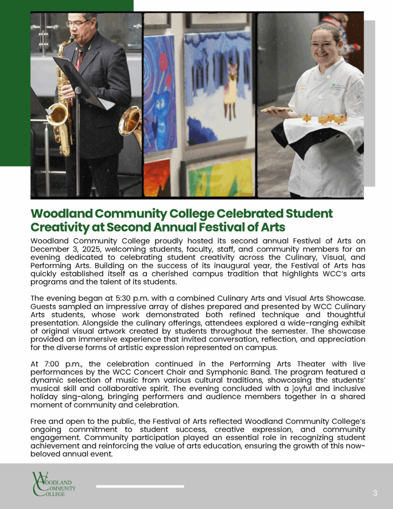 As we close 2025, we extend our heartfelt thanks to our community for your continued support of WCC. Your partnership, encouragement, and belief in our mission make a meaningful difference for our students and the college as a whole. We are deeply grateful for the role you play in strengthening WCC, and we wish you and your loved ones a joyful holiday season and a hopeful New Year. Attached please find the December Edition of WCC Insights!