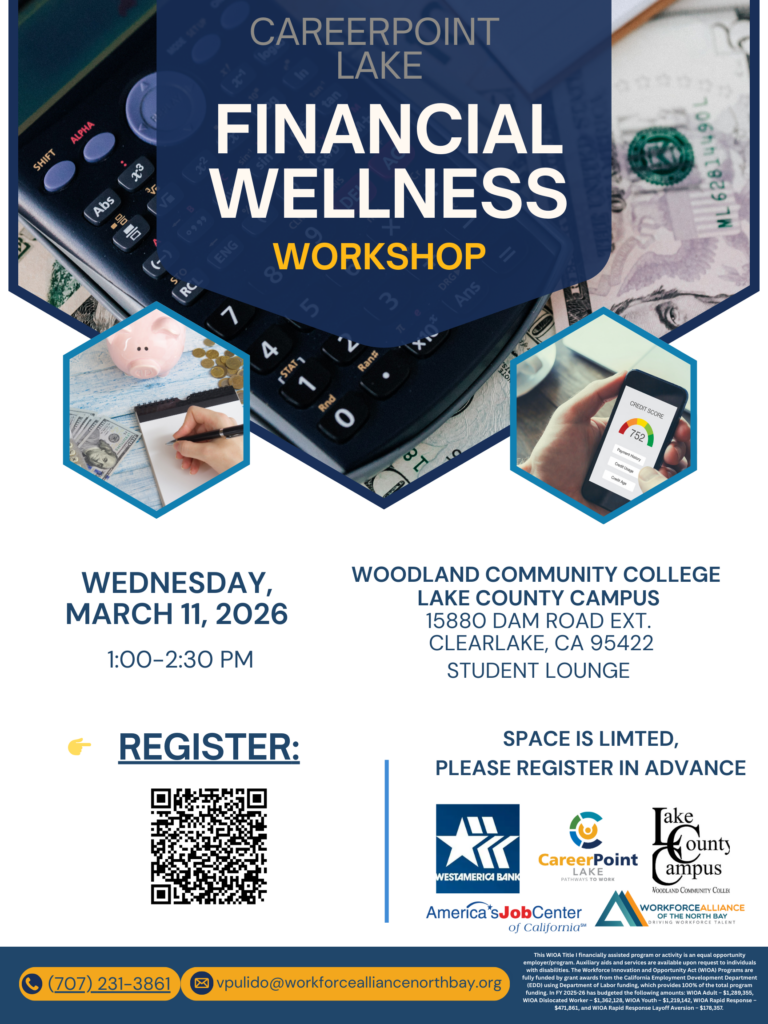 Hosted in partnership with CareerPoint Lake, WestAmerica Bank, and America’s Job Center of California.