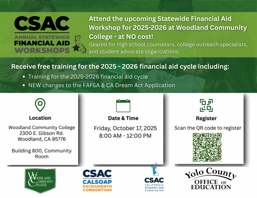 Join us for free training on the upcoming 2025–2026 financial aid cycle! This workshop, hosted by the California Student Aid Commission (CSAC), is designed for high school counselors, college outreach specialists, and student advocate organizations. Topics include: