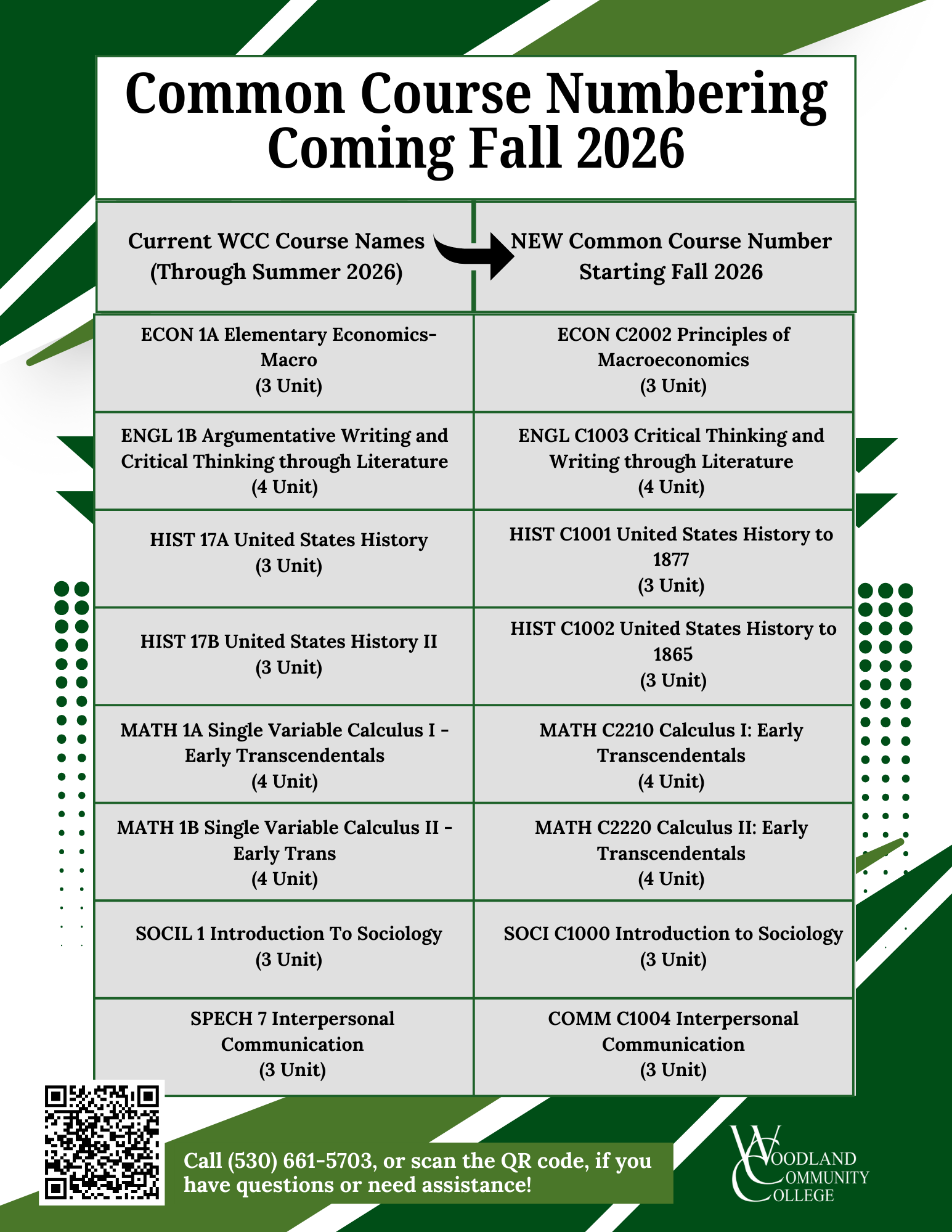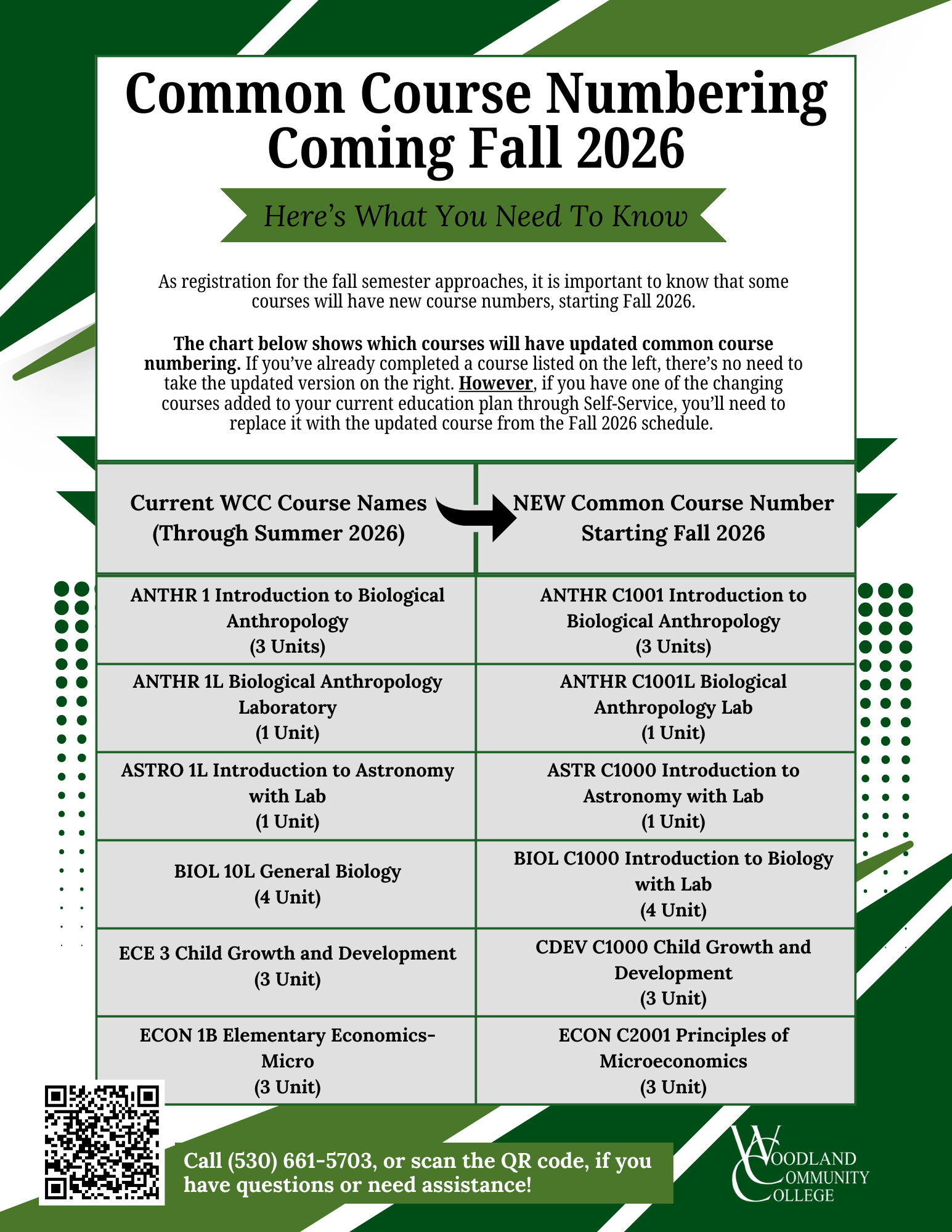 CCN changes will appear in phases across the WCC course schedule, catalog, Self Service, website, and publications, for the following courses: