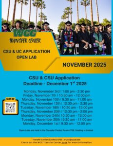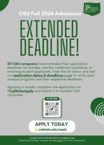 Welcome to the Woodland Community College Transfer Center! Our mission is to enhance the transfer culture of the college. We are committed to providing excellent services and resources to assist students with the transfer process to four-year colleges and universities.
